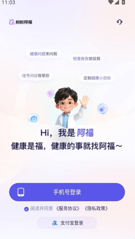 蚂蚁阿福(英文名AQ)是一款先进的健康管理应用程序,它借助创新的AI技术,为用户提供便捷的医疗支持。软件的核心功能包括AI辅助诊断,能够模拟医生进行实时问诊,并根据您的具体症状提供个性化的健康建议。