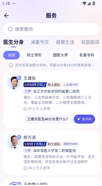 一站式医疗服务:集成“咨询-解读-就医-医保”全流程服务,无需切换多个平台,例如从AI咨询到挂号就诊可在同一应用内完成。