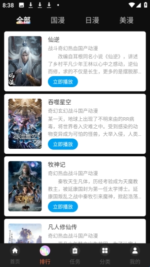 1、软件首页将动漫进行了国漫、日漫等分类。