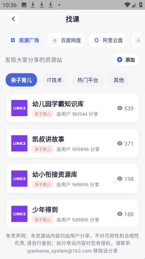 2、资源广场中有其他用户分享的课程。