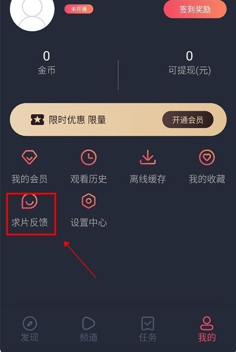 5、如果没有搜索到自己想看的,也不用着急,可以点击“我的”-“求片反馈”进行留言即可。
