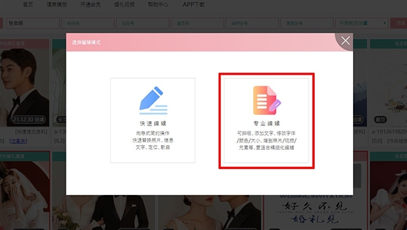 进入网站编辑请柬,选择专业编辑