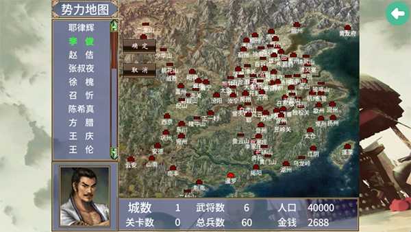 3、选择自己的角色,每个校色有独属于自己的势力地区