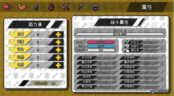 5、在属性版面,玩家可以看到角色的能力值以及战斗属性;