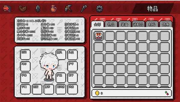 6、在物品栏当中,玩家可以给角色装备上各种类型的武器装备;