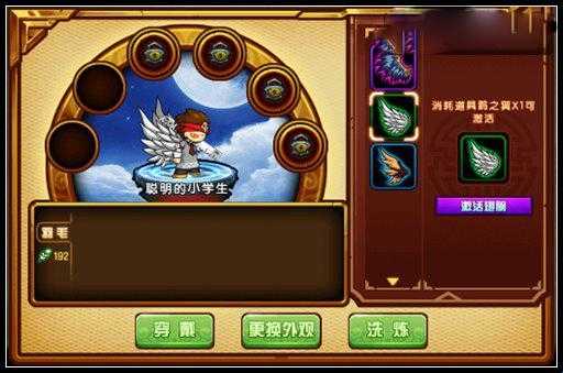 进入洗练属性后,可以选择羽毛,然后消耗羽枝和灵魂洗练羽毛的属性。