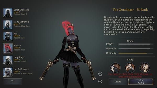 1、打开恶魔猎手暗影世界官方版,点击屏幕开始,选择一个喜欢的角色;