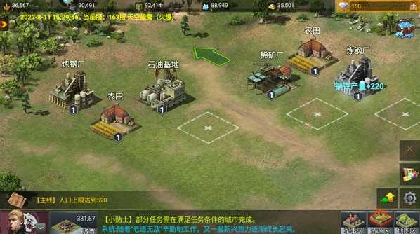 1、按任务发展,主要是发展资源。“资源城”要多建仓库,粮食,石油,钢铁,稀矿都按1:2:2:1建造比较合适。