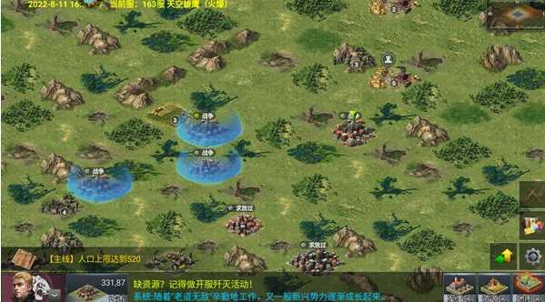 1、足够的人口。黄金收入和兵源均受此项影响,随时保证充足的人力资源是游戏中应该时刻注意的。在初期,策略经常是很迅速的先建造10个民居,因为在资源充足的情况下,高人口上限会增加人口增长的速度。