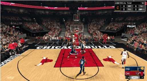如果跳起的瞬间,发现对方亦腾空,你还可以有挽救这个进球的机会,那就是空中改变投篮,在扣篮或上篮过程中,在空中向任何方向推动右摇杆。那么可以将上篮变为假投或者是一个大风车换手上篮。