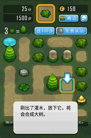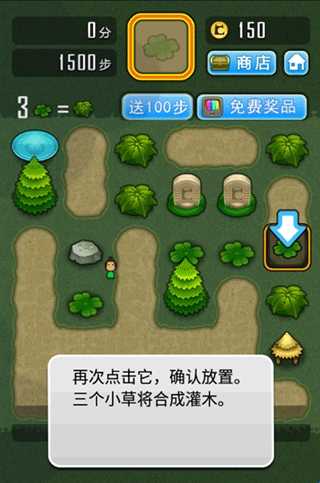 2、再次点击它,确认放置,接着将三个小草合成灌木。