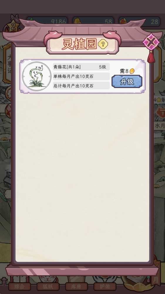 3、在灵植园中升级各种灵植来获得更多灵石。