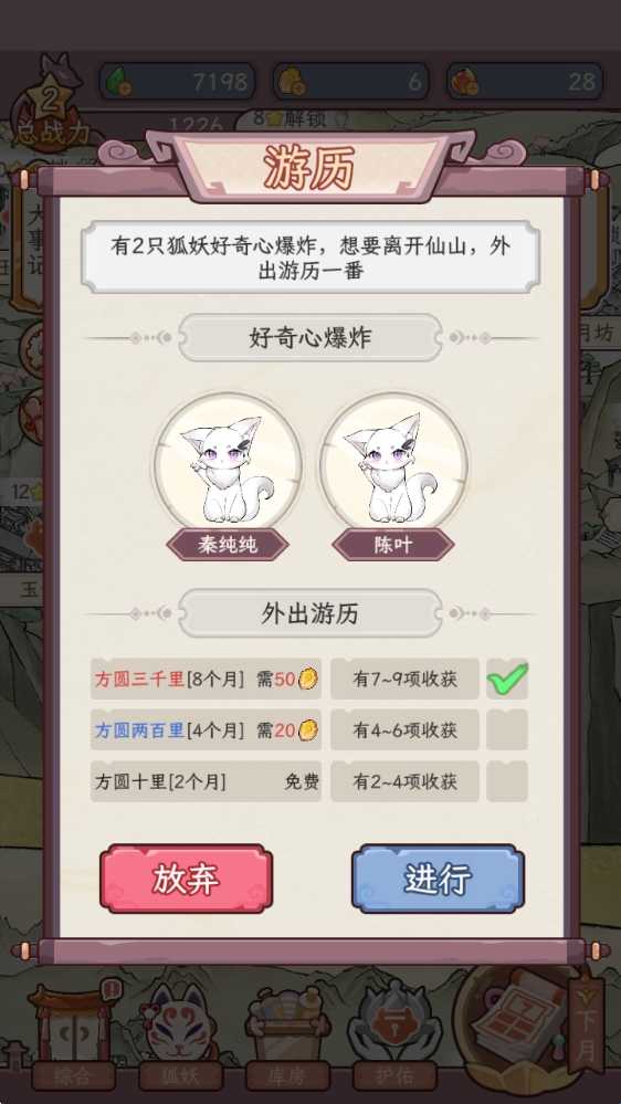 4、接着我们能够让狐妖们出去游历。