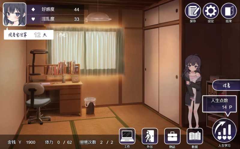 2、一起吃饭、洗澡、散步、看电视、玩游戏,触发大量动态 CG与温馨剧情。