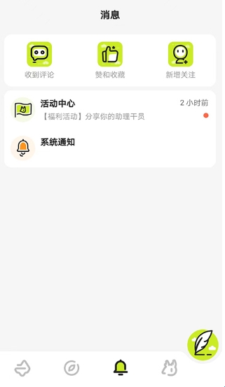 3、进入消息界面,可查看评论、赞、收藏和新增关注的消息提示,