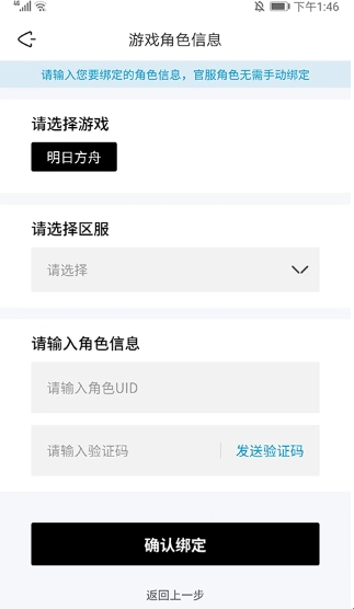 8、选择相应的游戏、区服,然后输入角色信息和验证码后,选择【确认绑定】选项就可以在森空岛中绑定游戏角色信息了。