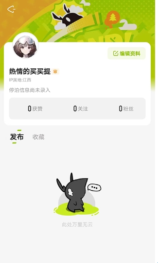 5、进入个人中心,可以查看详细的获赞数、发布数、关注数、粉丝数和收藏数等内容,还可以编辑用户资料,