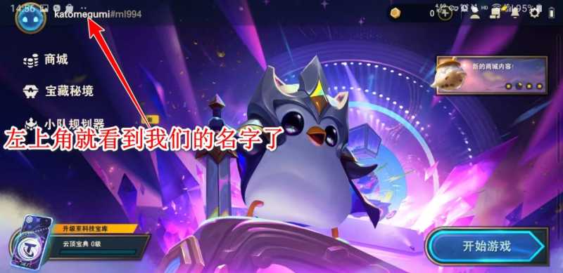 2.输入完成后我们进入游戏就能再游戏左上角看到我们的名字了