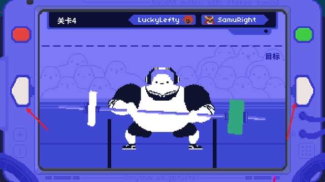 1、点击左右两侧的按钮即可控制左右手发力来举起杠铃。