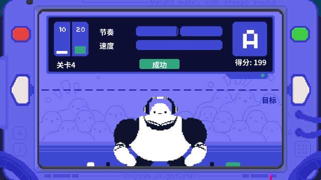 《节奏举重》英文名Rhythm Weightlifter,是一款融合举重与节奏的休闲益智游戏。游戏以复古像素画风呈现,玩家一进入就看到醒目的杠铃,旁边站着简约黑白配色的举重运动员,背景中强劲的节奏音乐瞬间拉开序幕。