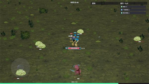 2、正式开始后左边控制角色的移动,角色会自动攻击出现的怪物。