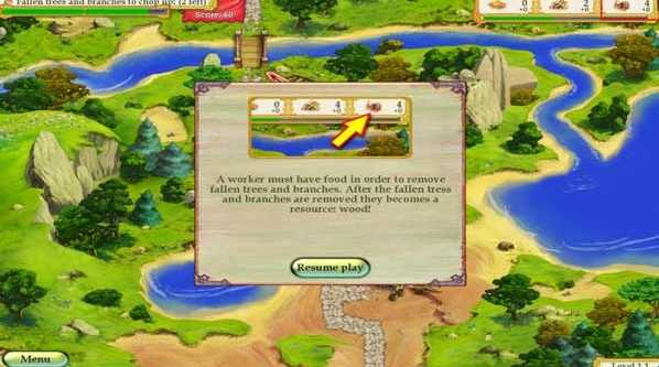 4、工人必须有食物才能移走倒下的树木和树枝,因此每次当玩家做完相应的任务时,需要回到房屋补充食物。并且当玩家将倒下的树砍断之后,分支被移除,它们就变成了资源,木头!
