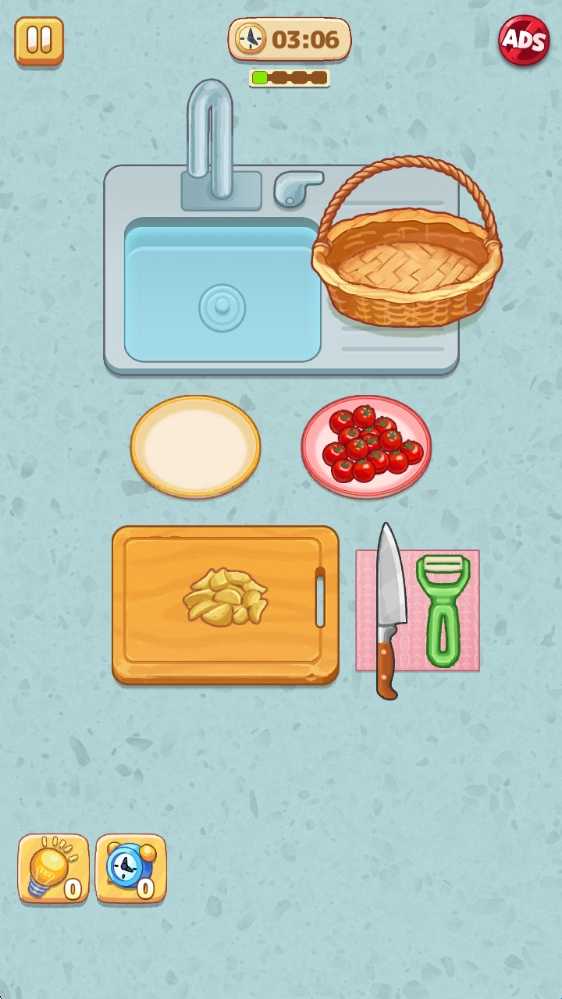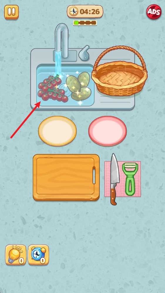 2、进入之后需要挑选食材,随后就能进入厨房,在水池中放进塞子,然后放入食材进行清洗。