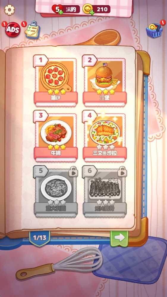 1、开始游戏后,可以在主界面看到众多菜谱,点击对应的即可开始挑战。