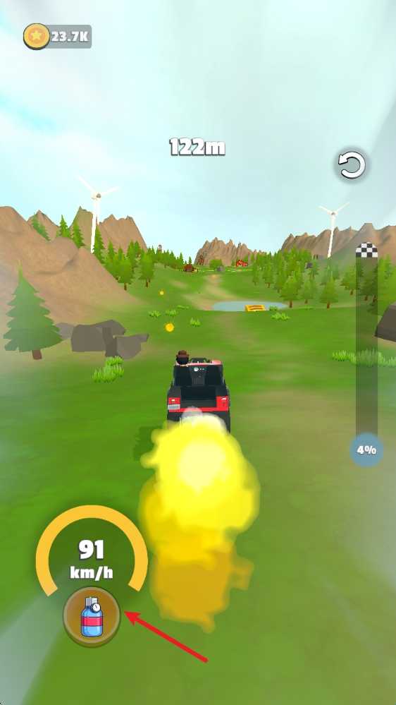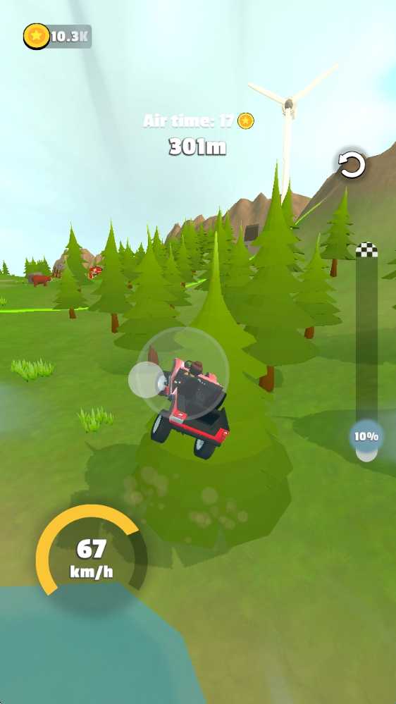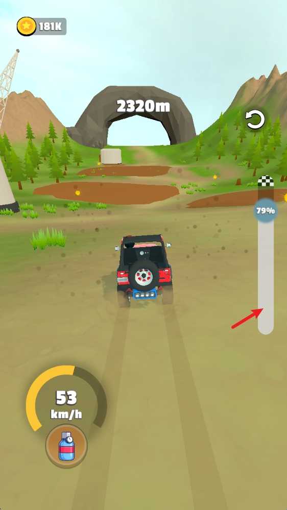 1、开始游戏后,向后拉动屏幕即可蓄力,松手后即可将汽车发射出去。