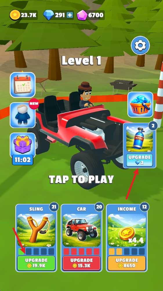 4、通过收集金币来升级自己的各项属性,包括氮气加速。