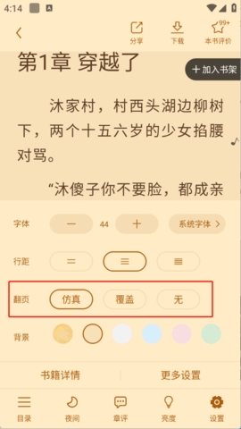 护眼模式、仿真等多翻页效果、自定义阅读设置,统统帮你搞定