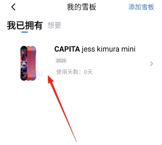 4、添加好之后,你就可以用软件记录这块雪板的各种数据
