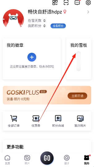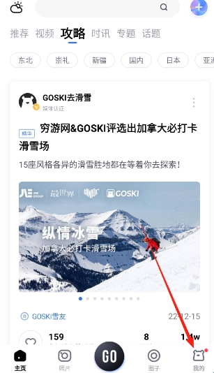1、打开GOSKI去滑雪App,登录之后,点击【我的】