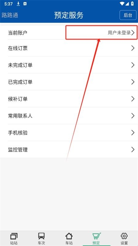 1、下载安装软件,然后进入首页点击预订,点击当前账户进入登录页面