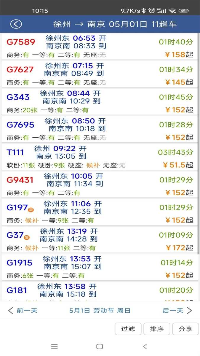 3、站站查询:通过“始末点查询”,可查询两站间所有列车信息