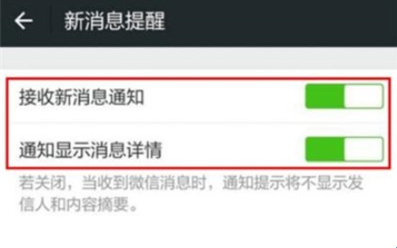 若关闭,当收到微信消息时,通知提示将不显示发信人和内容摘要。