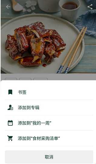 3、搜索到合适的菜谱可点击添加到【我的一周】菜谱中;