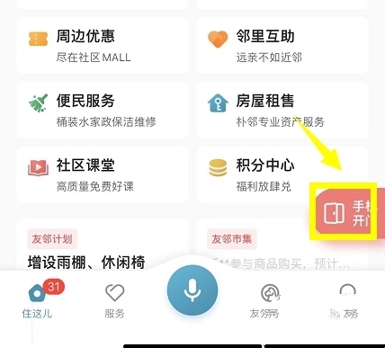 1、打开你的手机门禁系统app,点击右下角的手机开门,如下图所示