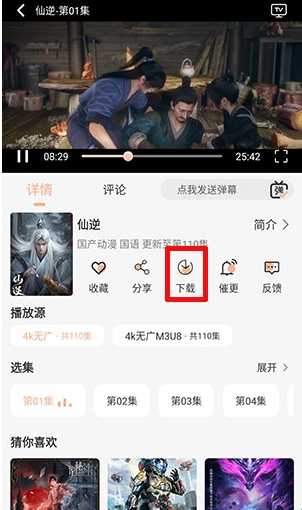 3、在播放界面点击如图所示的下载