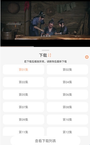 4、选择要下载的集数,然后点击查看下载列表
