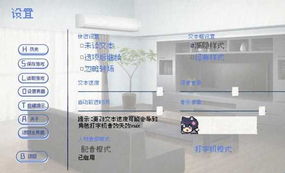 4、另外在游戏设置中你也可以随意调整快进、文本速度、自动前进时间等等