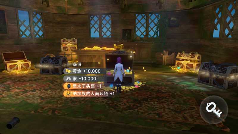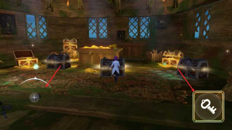 3、击败幽灵船之后,我们就可以船进行探索,左侧摇杆控制移动,点击右侧钥匙即可打开宝箱。