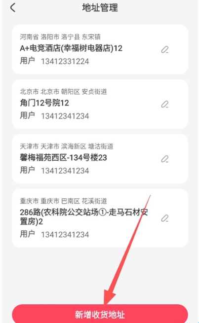 4、在新增页面填写"收货人、手机号码、所在地区、收货地址、详细地址";