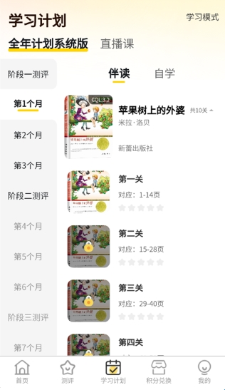 6、然后返回,在【学习计划】页面就可看到推荐的书单,孩子们可以根据计划进行阅读。