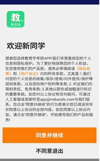 1、下载并安装打开教育学考研app,阅读协议自行选择是否同意