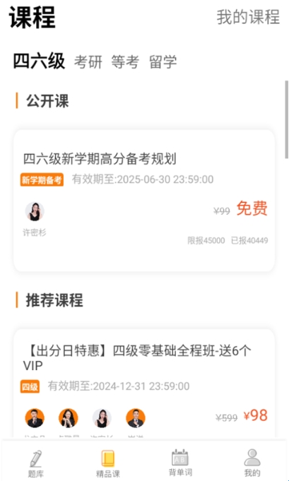 推荐有很多的考研课程,可以选择所需课程来学习使用。
