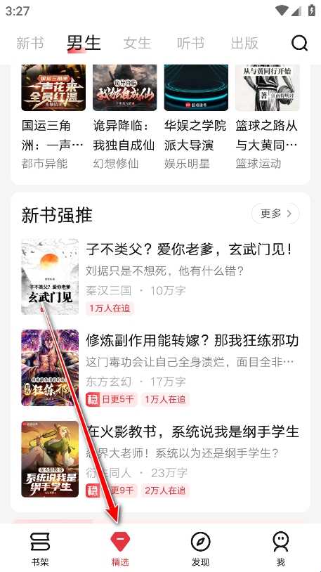 6、返回,点击下方的精选,可以看到这里有分类超级详细的小说板块内容。