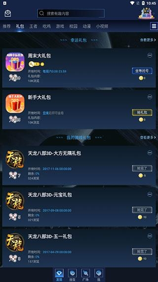 4、而在主界面不仅可以搜寻自己想要的内容,还能抢软件发布的游戏礼包。
