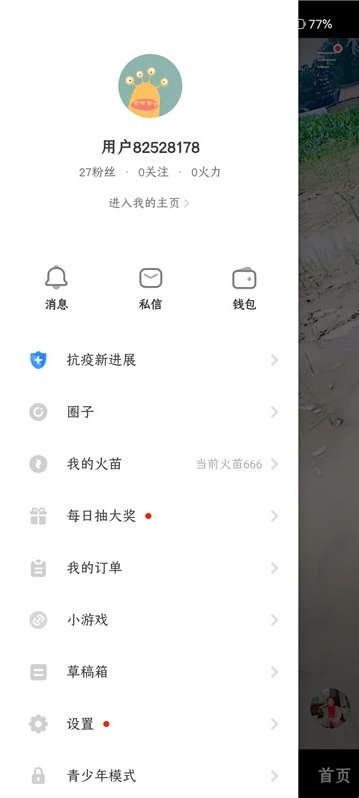5、抽奖完毕以后,我们回到视频首页,点击页面右上角的【火苗】按钮,来到提现页面。