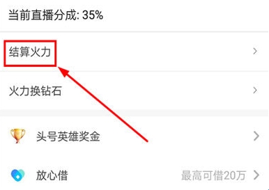 4、当天拿到的火力选择点击结算火力就可以将火力累积起来然后换算成现金了。